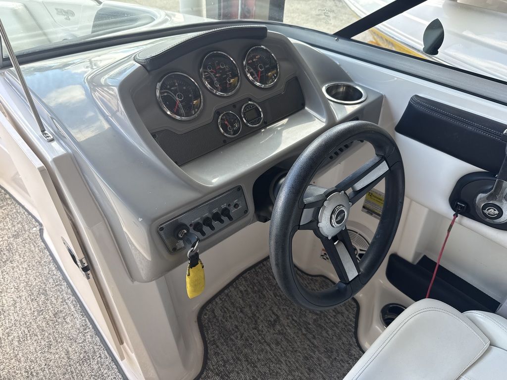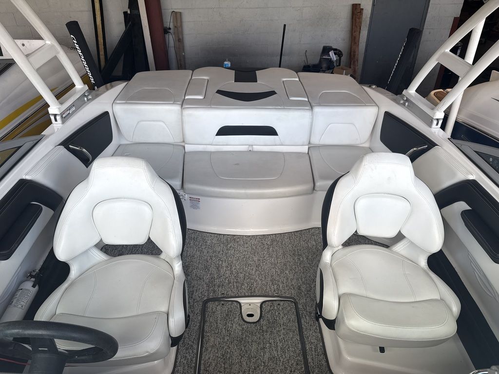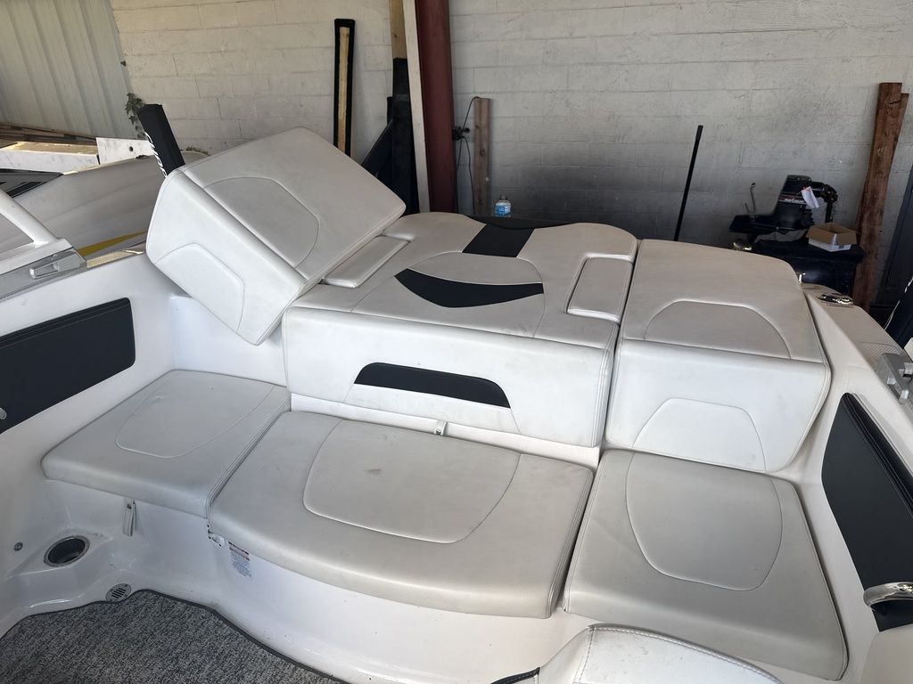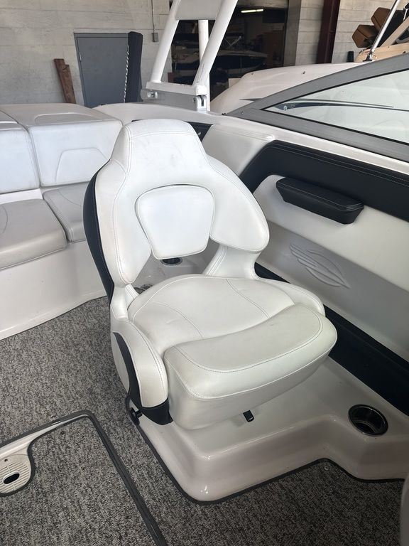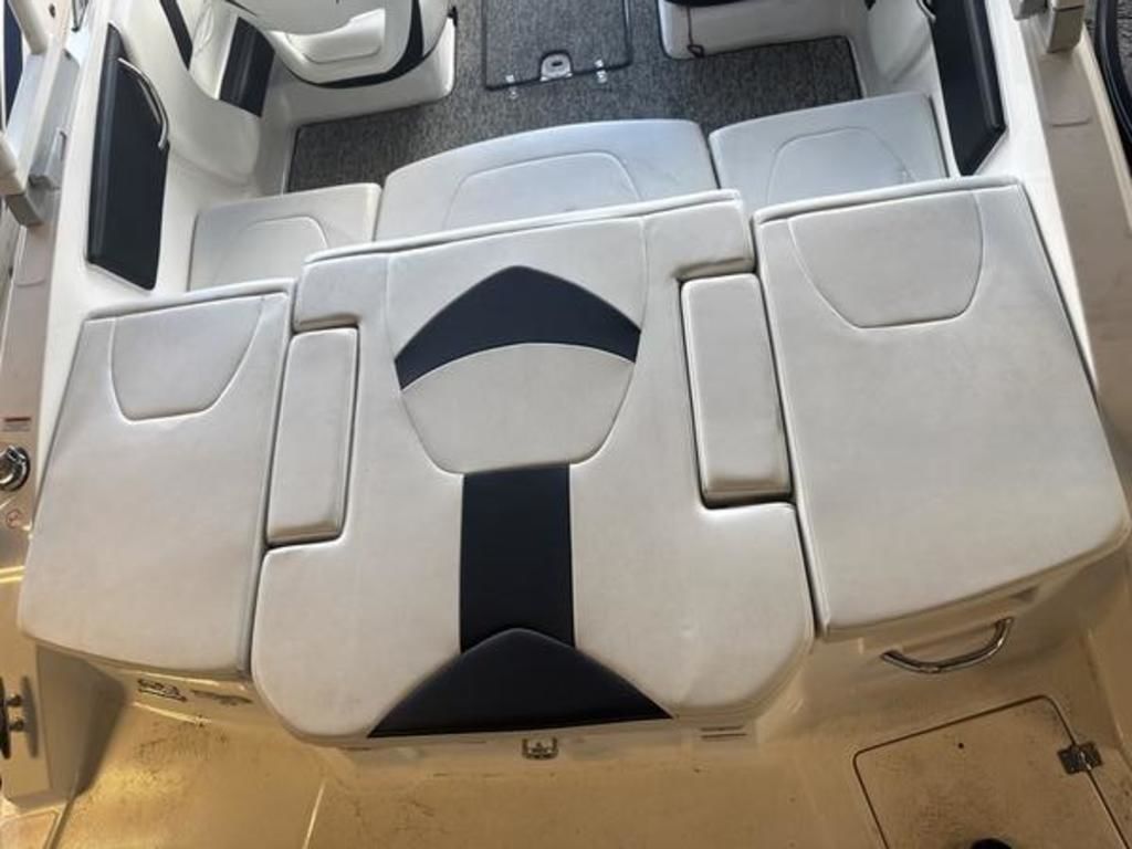 - Cockpit Layout: Two Bucket Seats (Slide and Swivel) with Logo Badging, Rear Bench Seat and Aft Hinged Sundeck with Walk-Thru and Lounge Position