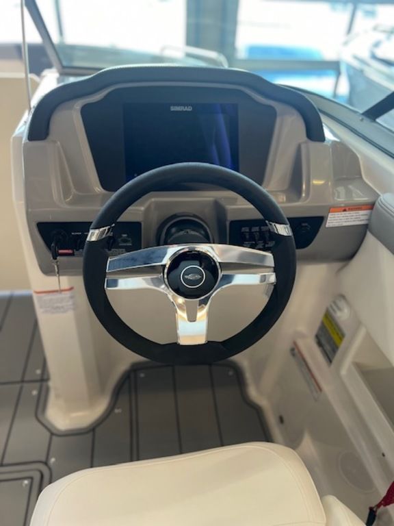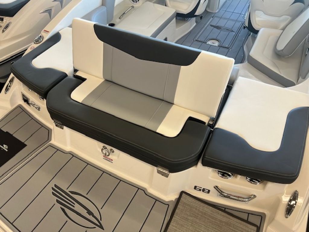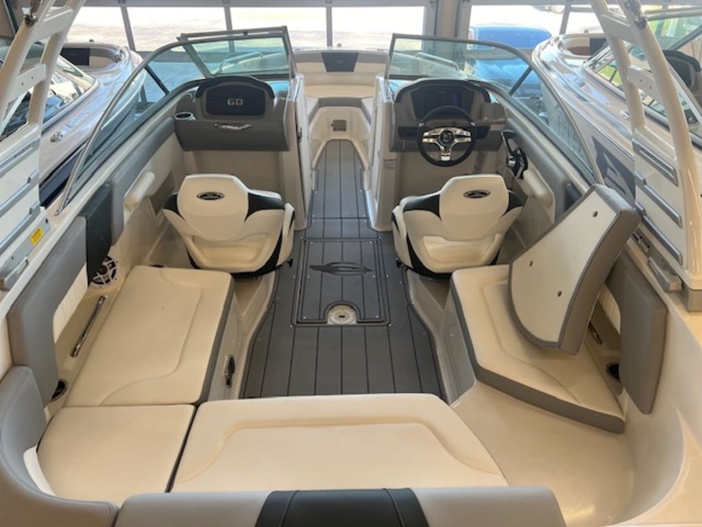 - Cockpit Layout: Two Bucket Seats (Slide and Swivel) with Logo Badging, U-Shaped Seating and Aft Hinged Sundeck with Walk-Thru, Lounge Position and Aft Facing Seat