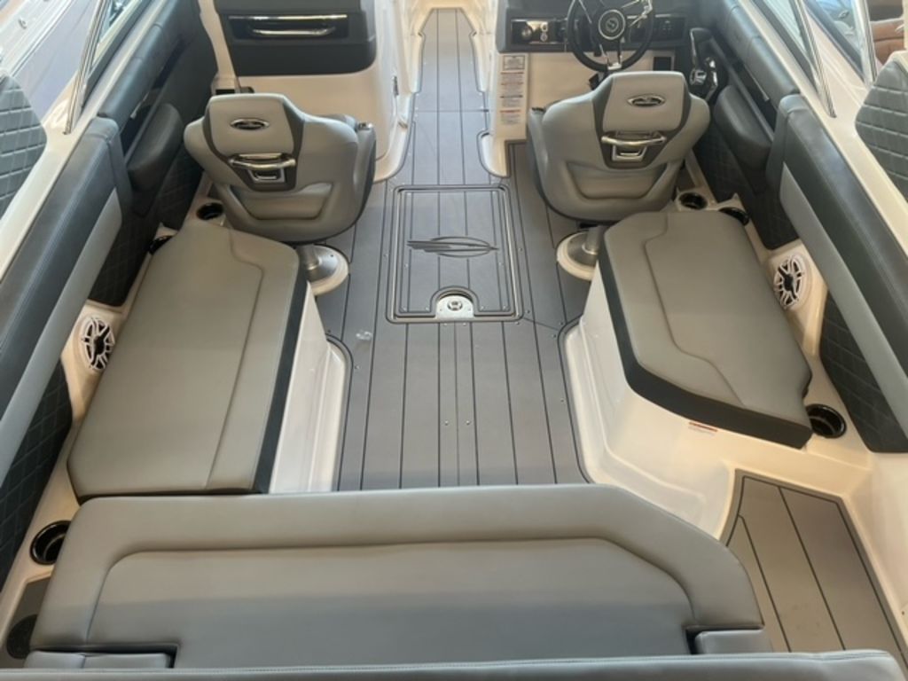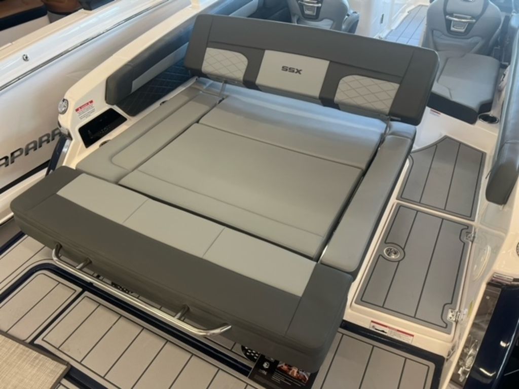 Look no further. The redesigned 267 SSX is breaking barriers and setting the standard in quality. Standard equipment like the state-of-the-art oversized 12" Simrad display resides within the easily accessible helm for improved ergonomic navigation. Sporting spacious standard u-shaped aft seating, the cockpit leads back to the standard Infinity Power Step swim platform that provides an unparalleled reboarding experience. The 267 SSX was designed to captivate with no compromise to power or performance.